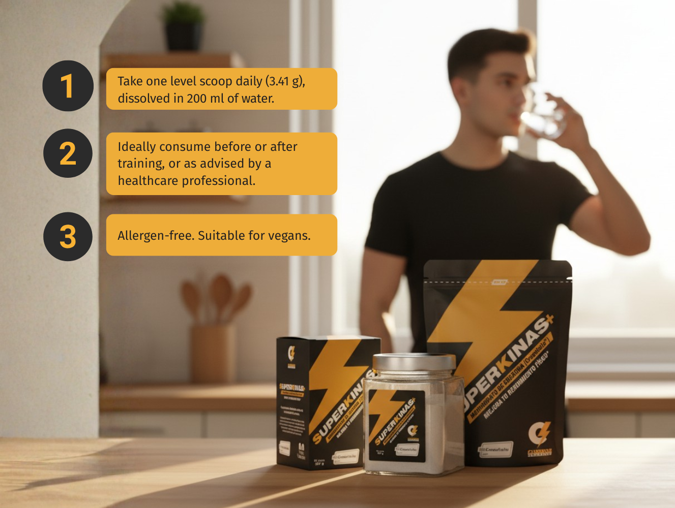 This isn’t just another product; it’s the result of our work with patients and with the community who follow and trust us. Superkinas+ was created with a clear commitment: to support women and men who want to build strength, energy and long-term health at any stage of life.